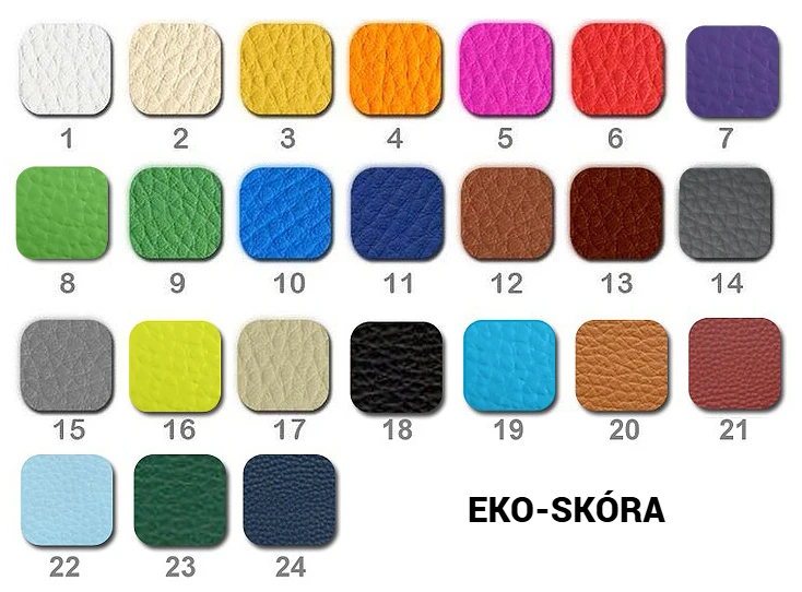 Posiadamy eko-skórę od polskiego producenta, która w przeciwieństwie do eko-skóry chińskiej nie pęka i nie wyciera się.