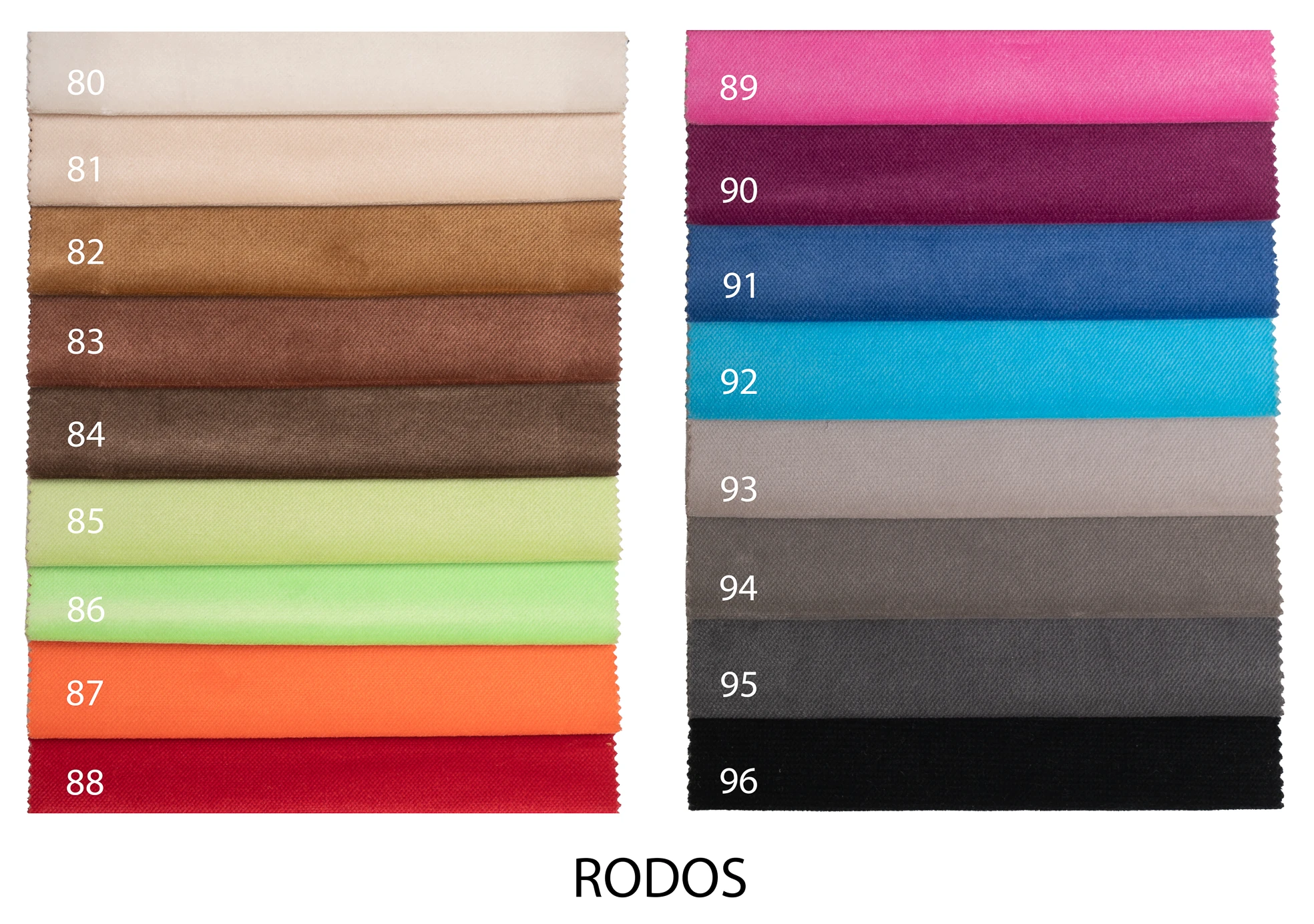 Tkanina jest niezwykle miła i ciepła w dotyku, posiada delikatny włos i pięknie się układa, dlatego łatwo dopasować ją do większości mebli tapicerowanych. Wariacja dwóch kolorów materiałów pozwala na utworzenie wyjątkowej propozycji aranżacji każdego wnętrza. Rodos sprawdzi się zarówno jako materiał obiciowy na meble, jak i do wszelkiego rodzaju artykułów dekoracyjnych, poduszek itp.